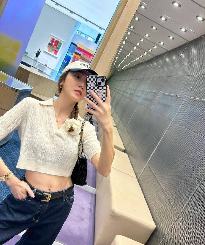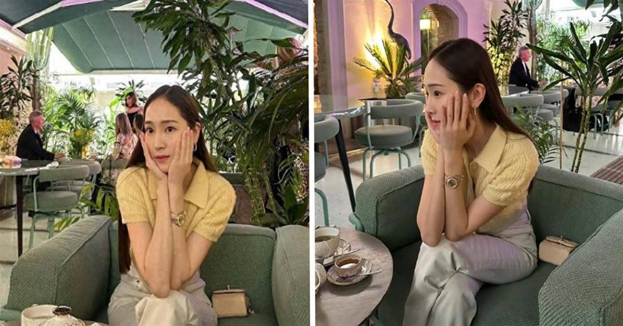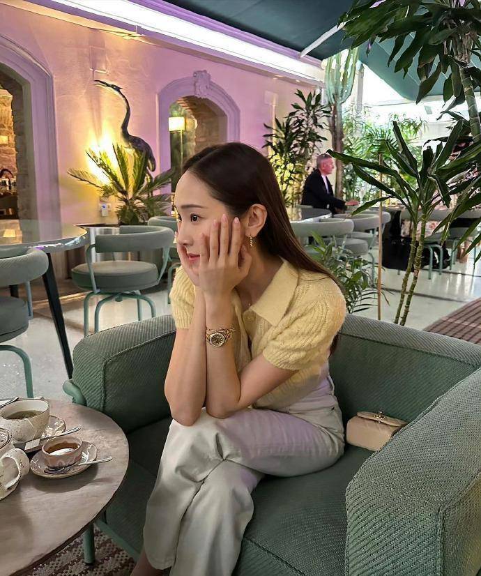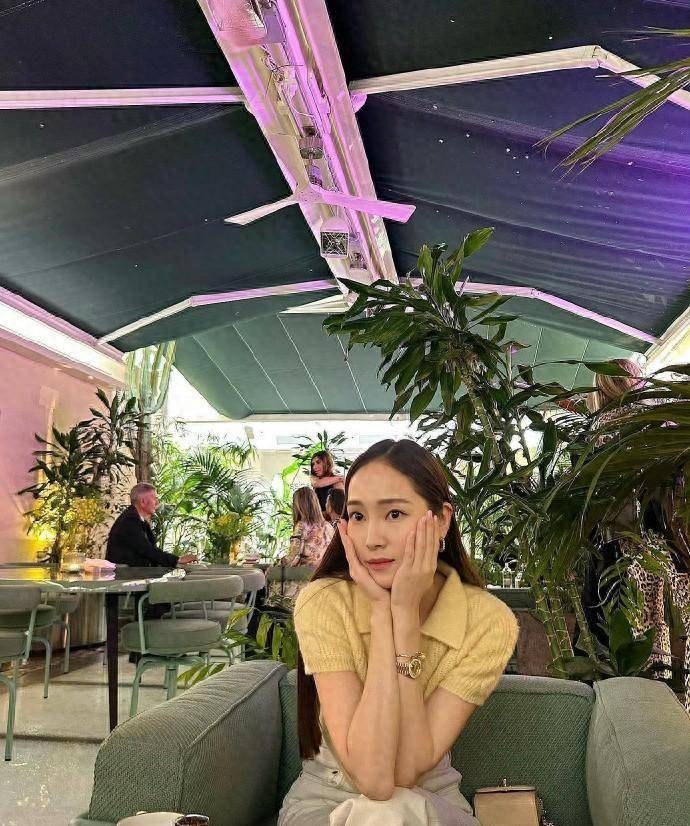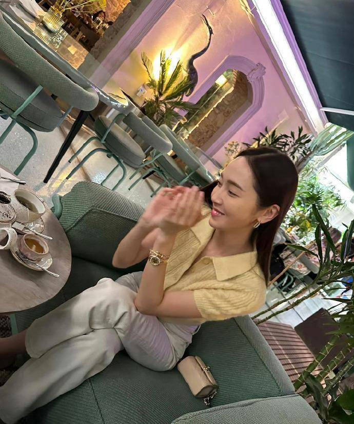 鄭秀妍的色彩選擇很「心機」,淡黃色的針織polo衫,和配飾的顏色相呼應,溫柔氣質倍增!