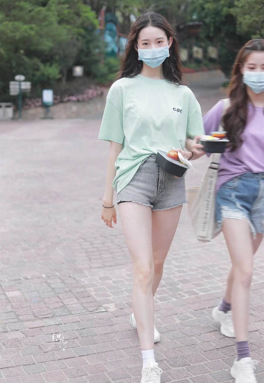 她的腿又細又長,肌肉線條勻稱,而且她的皮膚很白,穿裙裝露出兩條長腿太加分了。